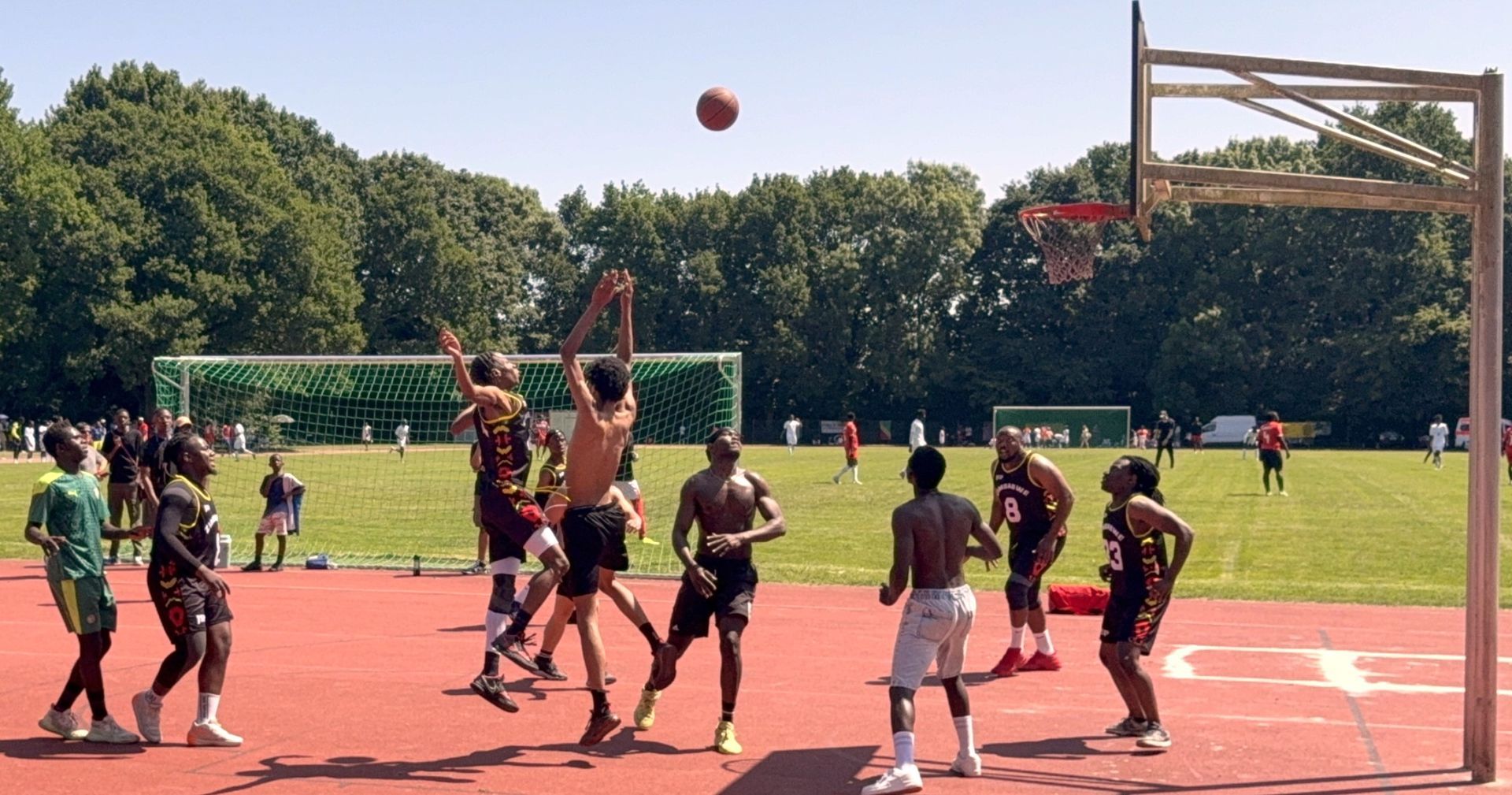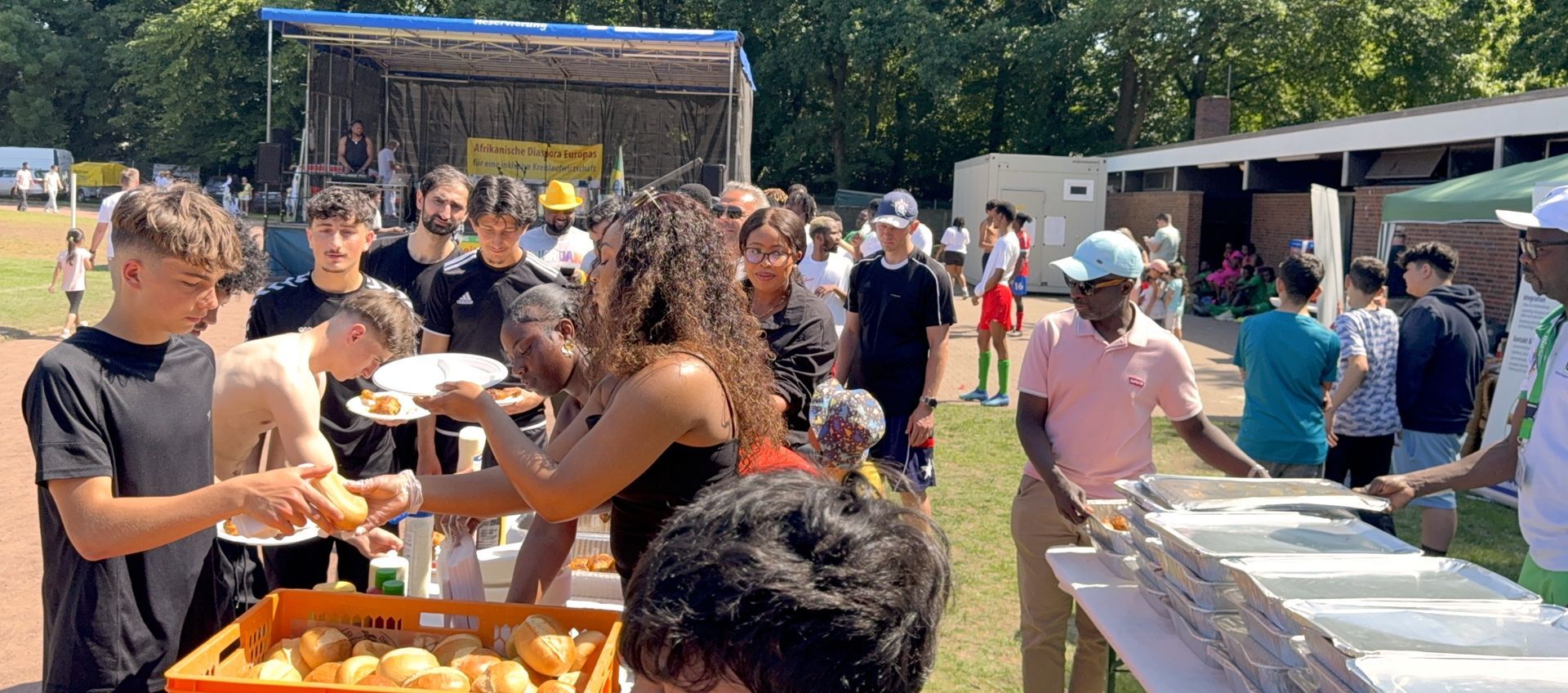 am Samstag, den 21. Juni ´25 hat auf den Sportplätzen an der Kennedystraße unser Fussballturnier gegen Rassismus, der 19. Afrika-Cup, stattgefunden. Bei strahlendem Sonnenschein und um die 30 Grad im Schatten trafen sich ab 12.00 Uhr verschieden Mannschaften aus afrikanischen Ländern. Dieses mal gab es eine Premiere. Zur Erinnerung an LORENZ hat ein Basketball-Turnier begonnen. Am ersten Tag in Form eines ungezwungenen Ballspielens ( Spiel-Show ), was am 28. Juni ´25 dann zu einem Wettkampf werden soll. Das Kulturbegleitende Programm entnehmt bitte unserem Info-Blatt.