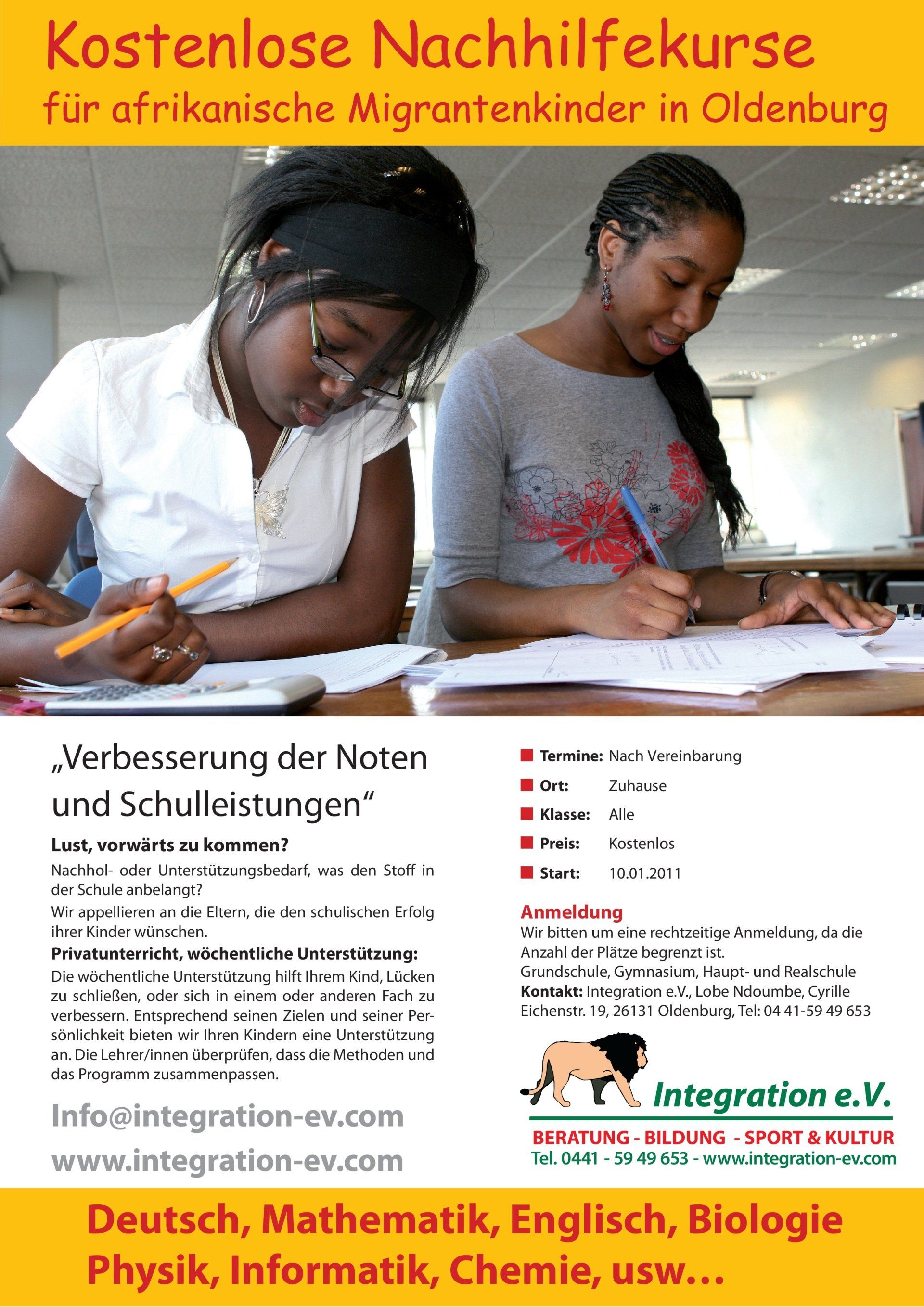 Unser Nachhilfeunterricht ist als eine außerschulische Veranstaltung konzipiert, die das Ziel verfolgt, Schülern mit Migrations-hintergrund bei den Hausaufgaben zu betreuen und Sprach- und Leseförderung anzubieten. Dabei soll unter Betreuung Hausaufgaben angefertigt werden, aber auch Hilfestellungen bei der Vorbereitung von Tests, Klausuren und Referate angeboten werden. Angedacht ist eine längere Betreuung von Kindern und Jugendlichen, damit ihre Lernschwächen erkannt werden und ihre Stärken gefördert werden können.