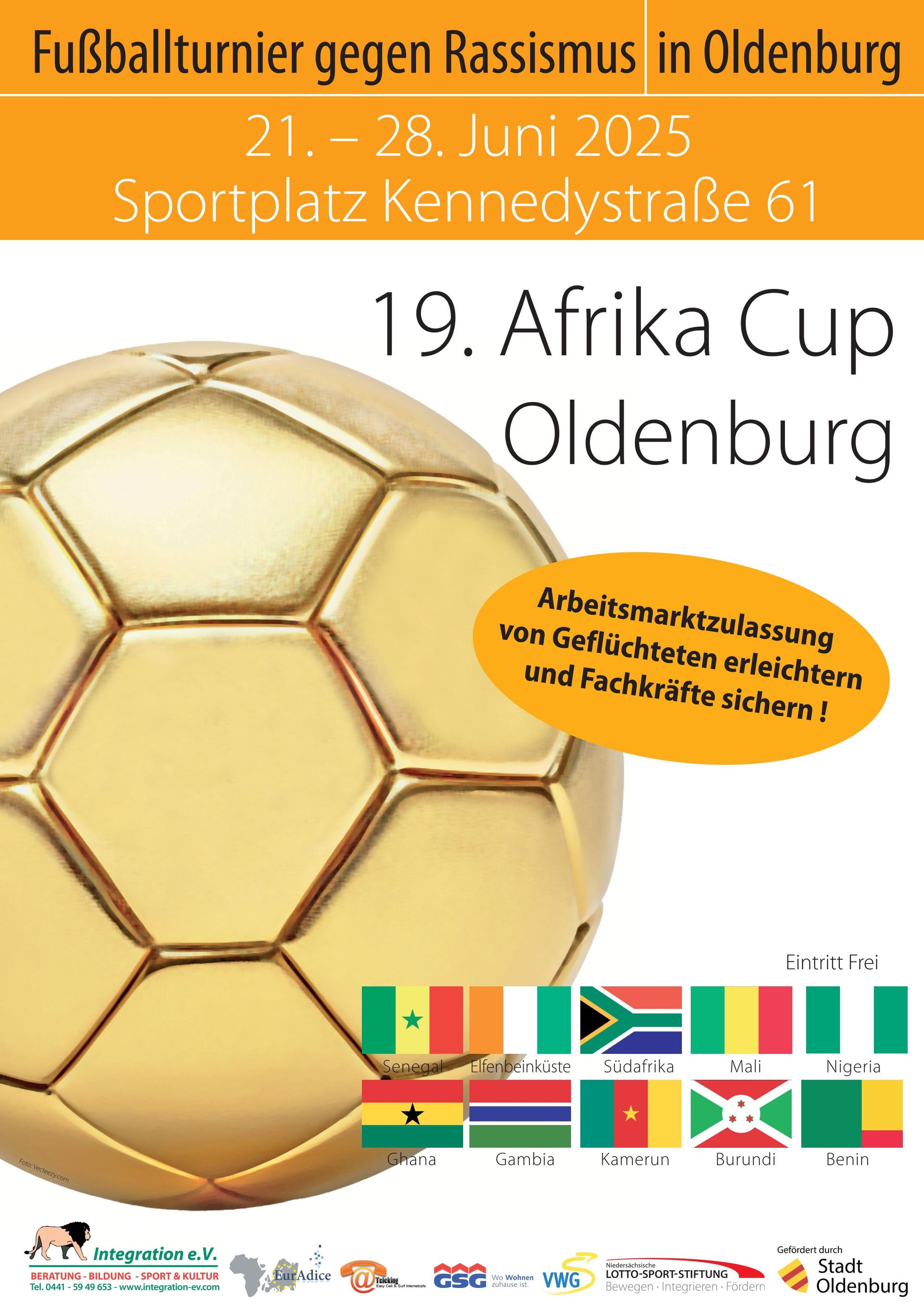 unser Verein Integration e. V. lädt alle Teamkapitäne der Fußballmannschaften, die an dem 20. Afrika-Cup und dem 10. Fairplay-Cup 2026 teilnehmen möchten, zu der Auslosung für den Spielplan in unser Büro in der Eichenstraße 19, Oldenburg-Eversten, am Freitag den 13. Februar 2026 pünktlich um 10.00 Uhr ganz herzlich ein. Die Auslosung wir etwa 30 Minuten dauern. Wir weisen darauf hin, dass aus organisatorischen Gründen jeweils nur eine Person des Teams, möglichst der Teamkapitän selbst, oder ein Vertreter, an dem Treffen teilnehmen kann. Die Ergebnisse werden anschließend allen teilnehmenden Mannschaften mitgeteilt.