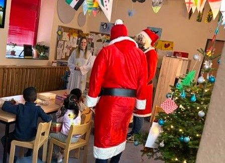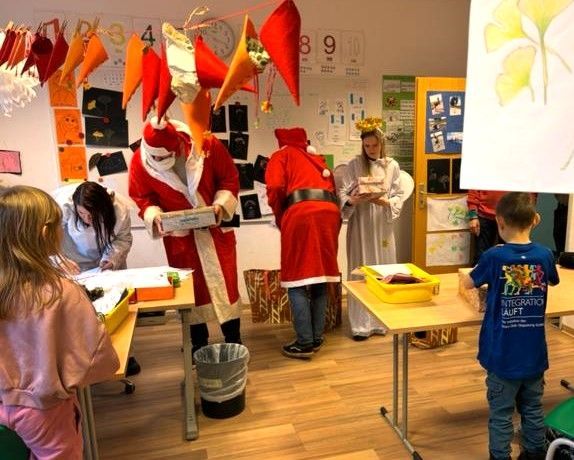 Wir bedanken uns bei den Sozialarbeiterinnen und Sozialarbeitern, die sich als Weihnachtsmänner verkleidet haben und die Geschenke an die Kinder persönlich übergeben haben. Damit möchten wir in dieser schwierigen Zeit ein Zeichen der Nächstenliebe und der Solidarität mit den Geflüchteten setzen.