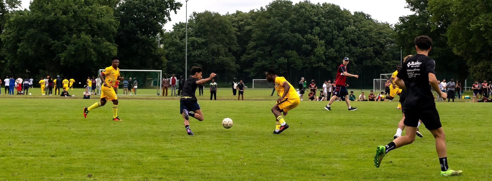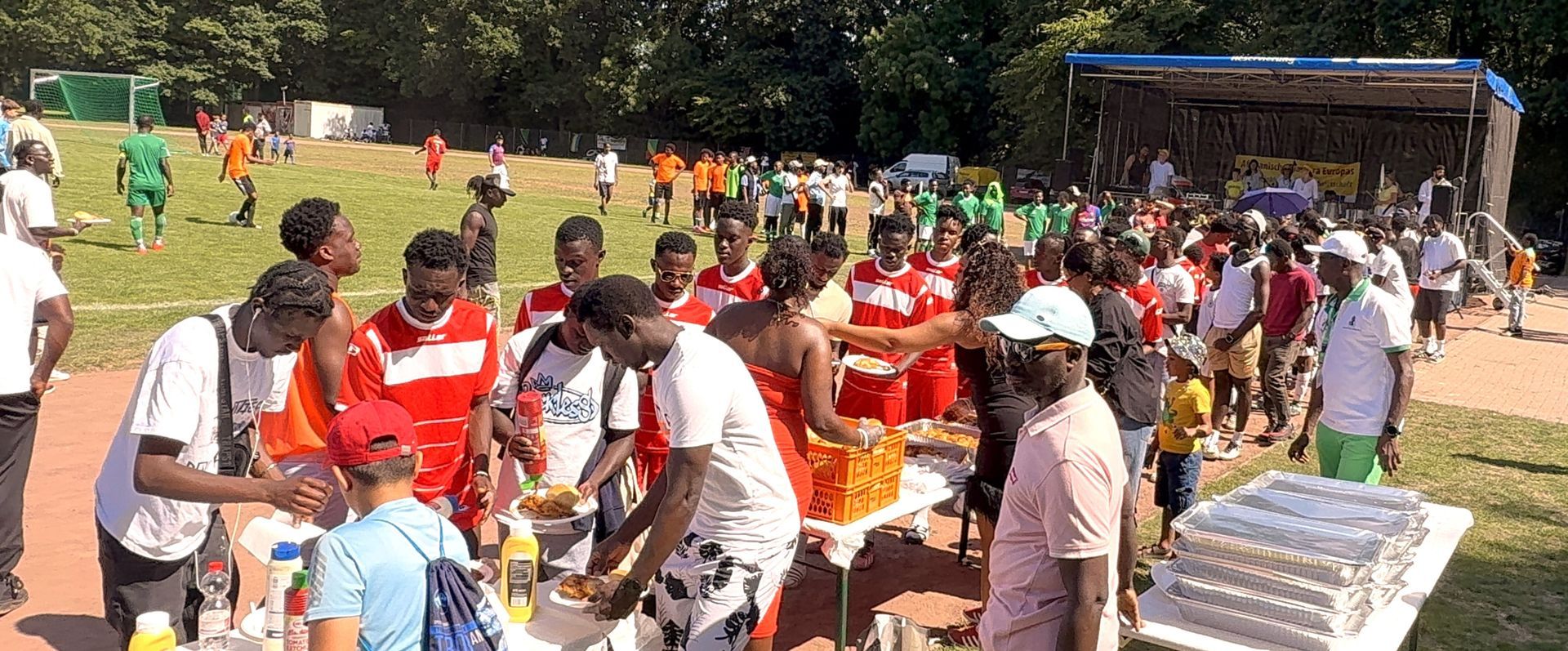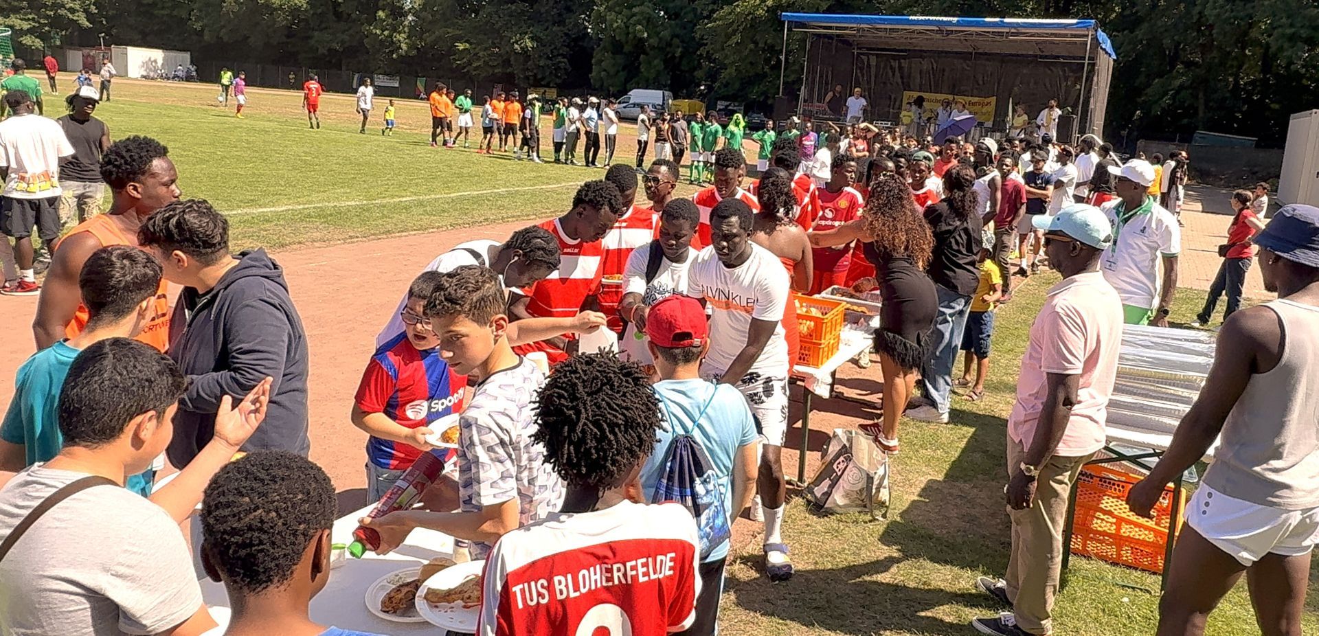 am Samstag, den 21. Juni ´25 hat auf den Sportplätzen an der Kennedystraße unser Fussballturnier gegen Rassismus, der 19. Afrika-Cup, stattgefunden. Bei strahlendem Sonnenschein und um die 30 Grad im Schatten trafen sich ab 12.00 Uhr verschieden Mannschaften aus afrikanischen Ländern. Dieses mal gab es eine Premiere. Zur Erinnerung an LORENZ hat ein Basketball-Turnier begonnen. Am ersten Tag in Form eines ungezwungenen Ballspielens ( Spiel-Show ), was am 28. Juni ´25 dann zu einem Wettkampf werden soll. Das Kulturbegleitende Programm entnehmt bitte unserem Info-Blatt.