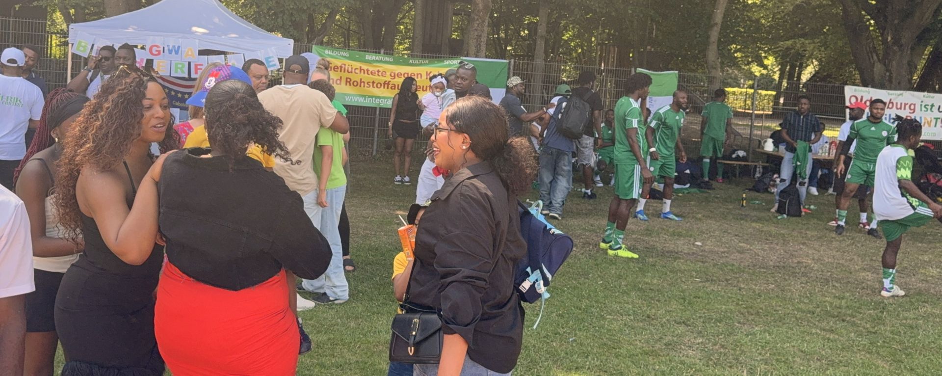 Wir laden alle Interessierte, Freundinnen und Freunde zum zweiten Teil des Turnieres am Samstag, den 28. Juni ´25 ab 14.00 Uhr zur Teilnahme ein. Neben den Tänzen der Frauen-Tanzgruppe aus Burundi und Ruanda und der Musik von DJ Esthetic aus Bremen wird es Workshops und Vorträge zum Projekt EurAdice und Vorträge zu " Gerechtigkeit für LORENZ " geben. Im Halbfinalspiel um den Fairplay-Cup werden ab 14.00 Uhr die Mannschaften aus Simbabwe gegen Niger und Burkina Faso gegen Ägypten gegeneinander spielen. Im Halbfinale um den Afrika-Cup werden ab 15.00 Uhr Mali gegen Benin und Ghana gegen Senegal spielen. Ab 16.00 Uhr spielen im Endspiel die Mannschaften um den Fairplay-Cup ´25. Ab 17.00 Uhr spielen die Mannschaften um den Afrika-Cup ´25. Im Folgenden die Übersicht: