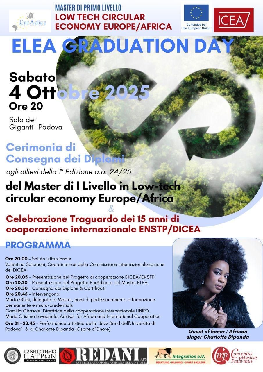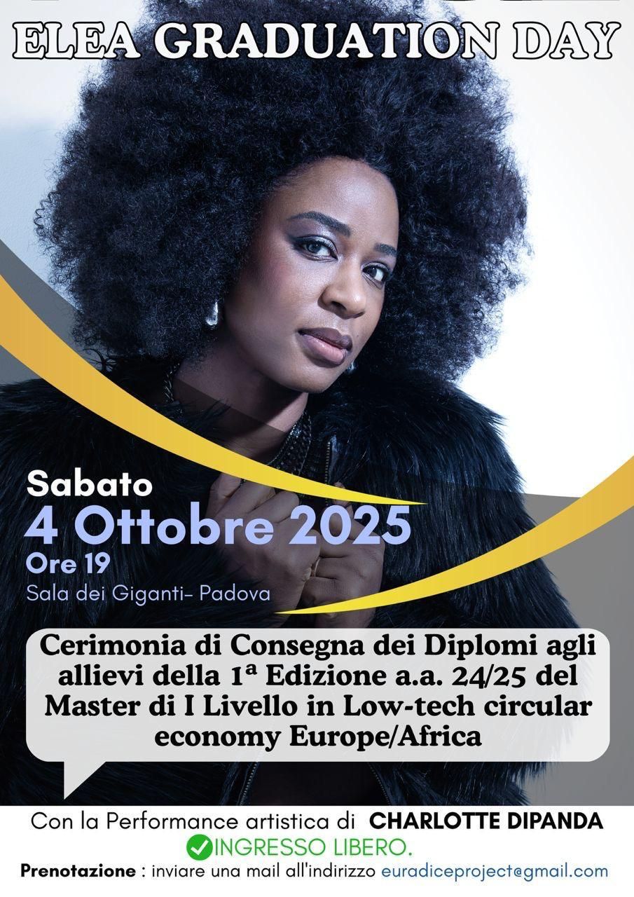 wir freuen uns Ihnen mitteilen zu können, dass das Projekt EurAdice ( Afrikanische Diaspora Europas für eine inklusive Kreislaufwirtschaft ) nun zum Abschluss kommt. Aus diesem Anlass wird es am 01. , 02., 03. und 4. Oktober 2025 in Padua / Italien eine große Abschlussveranstaltung mit Vorträgen und Gala geben.