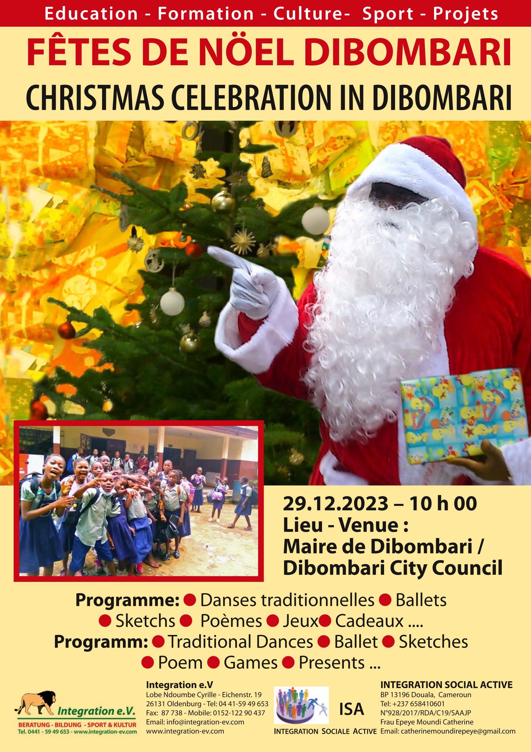 am 29. Dezember ´23 hat unser Verein Integration e. V. in Zusammenarbeit mit dem Verein " Integration Social Active " in dem Dorf Dibombari ( Kamerun ) ein großes Weihnachtsfest veranstaltet. Auf dem großen Dorfplatz, vor dem Rathaus, im Schatten alter großer Bäume, haben sich bis zu 600 Kinder versammelt.