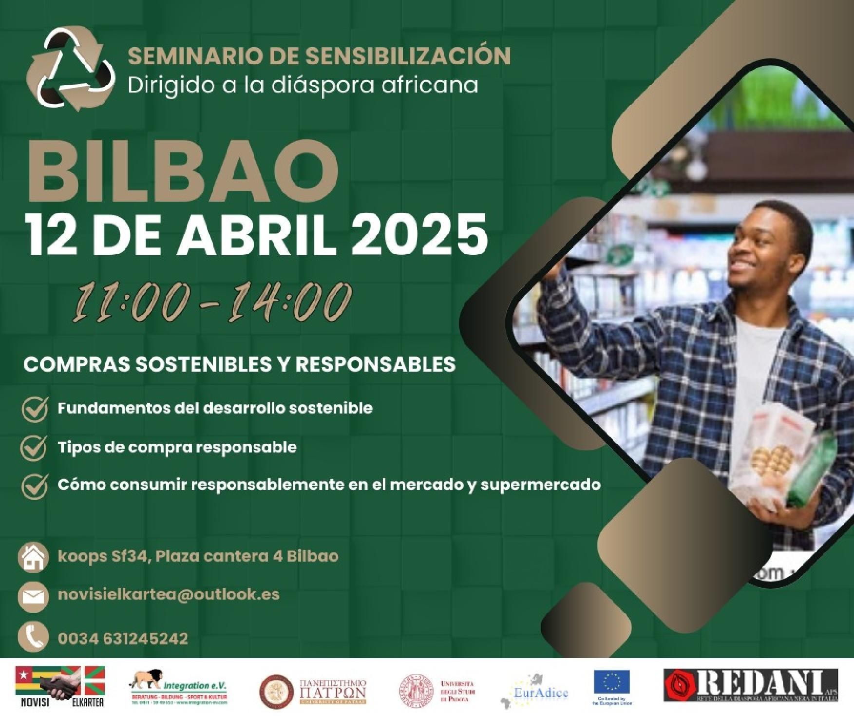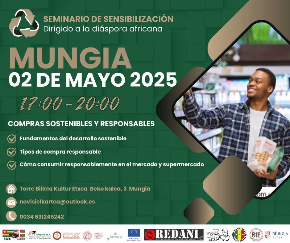 im Rahmen unseres EurAdice-Projektes (Afrikanische Diaspora Europas für eine inklusive Kreislaufwirtschaft) in Kooperation mit unseren Partnervereinen findet am 24. Mai 2025 von 16:00 bis 19:00 Uhr in Calle del Meson de Peredes 57, Lavapies , Madrid, eine Seminar statt. Das Thema lautet „Nachhaltiges / verantwortungsvolles Einkaufen“.