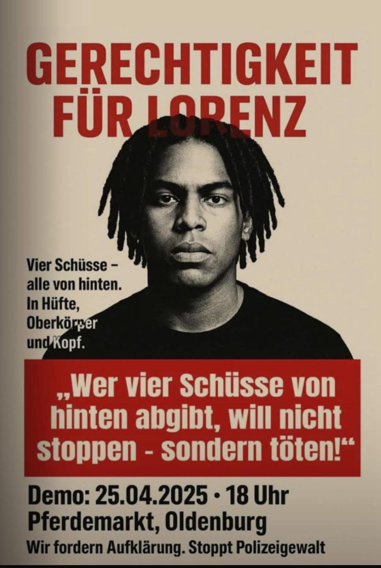anlässlich des gewaltsamen Todes von LORENZ hat in Oldenburg auf dem Pferdemarkt am Freitag, den 25. April ´25 ab 18.00 Uhr