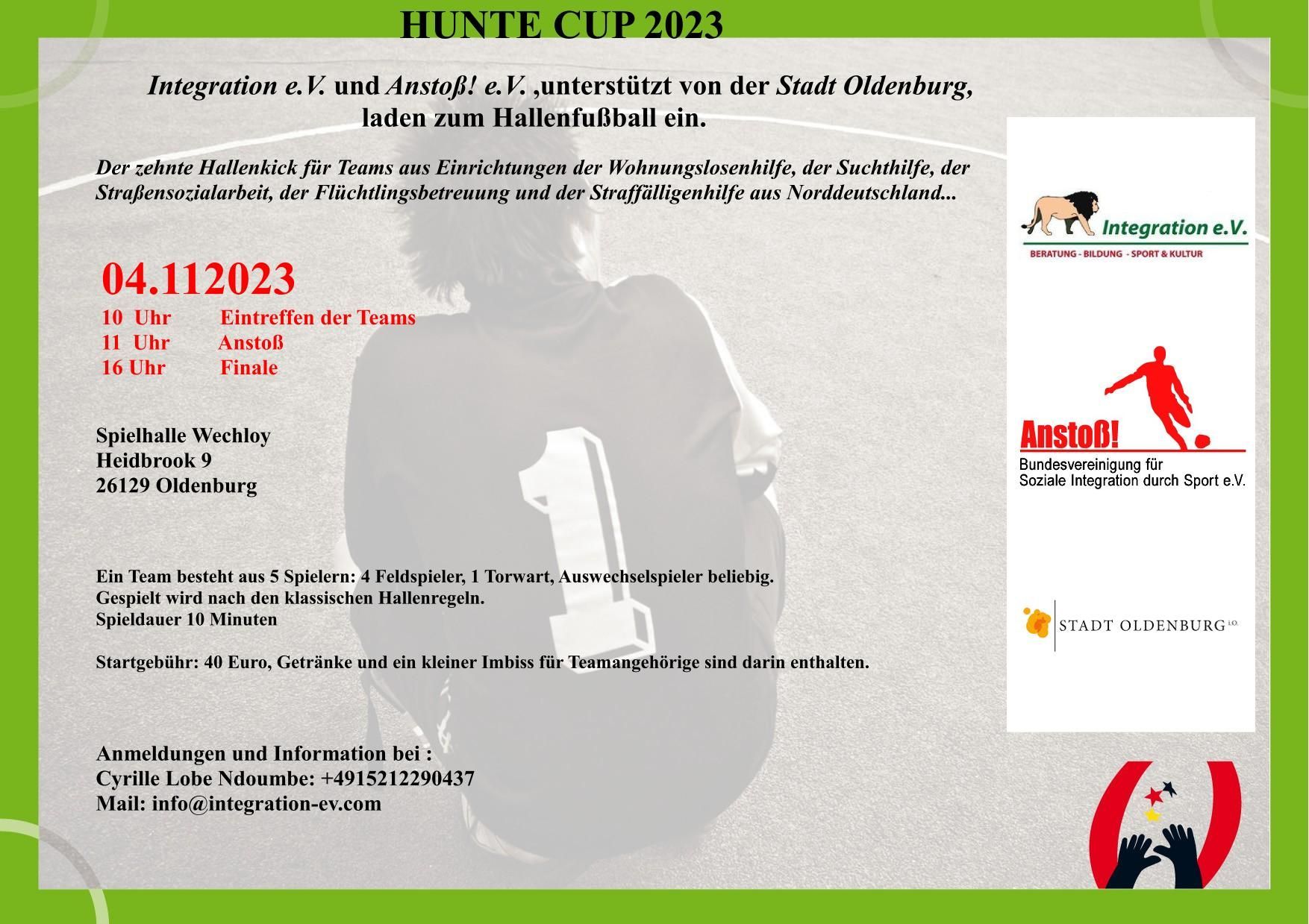 am Samstag, den 04. November ´23 haben wir in Zusammenarbeit mit dem Verein Anstoß! e. V. und der Stadt Oldenburg wieder unser Fußballturnier Hunte-Cup veranstaltet. An dem Turnier, was in der Spielhalle Wechloy ausgetragen wurde, haben neun Mannschaften aus verschiedenen gesellschaftlichen Bereichen teilgenommen, Wohnungslosenhilfe, Suchthilfe, Flüchtlingsbetreuung und anderen. Die Mannschaften haben sich dort um 10.00 Uhr eingefunden und mit den Spielen um 11.00 Uhr begonnen.