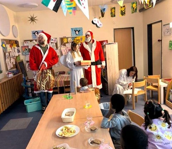 Wir bedanken uns bei den Sozialarbeiterinnen und Sozialarbeitern, die sich als Weihnachtsmänner verkleidet haben und die Geschenke an die Kinder persönlich übergeben haben. Damit möchten wir in dieser schwierigen Zeit ein Zeichen der Nächstenliebe und der Solidarität mit den Geflüchteten setzen.