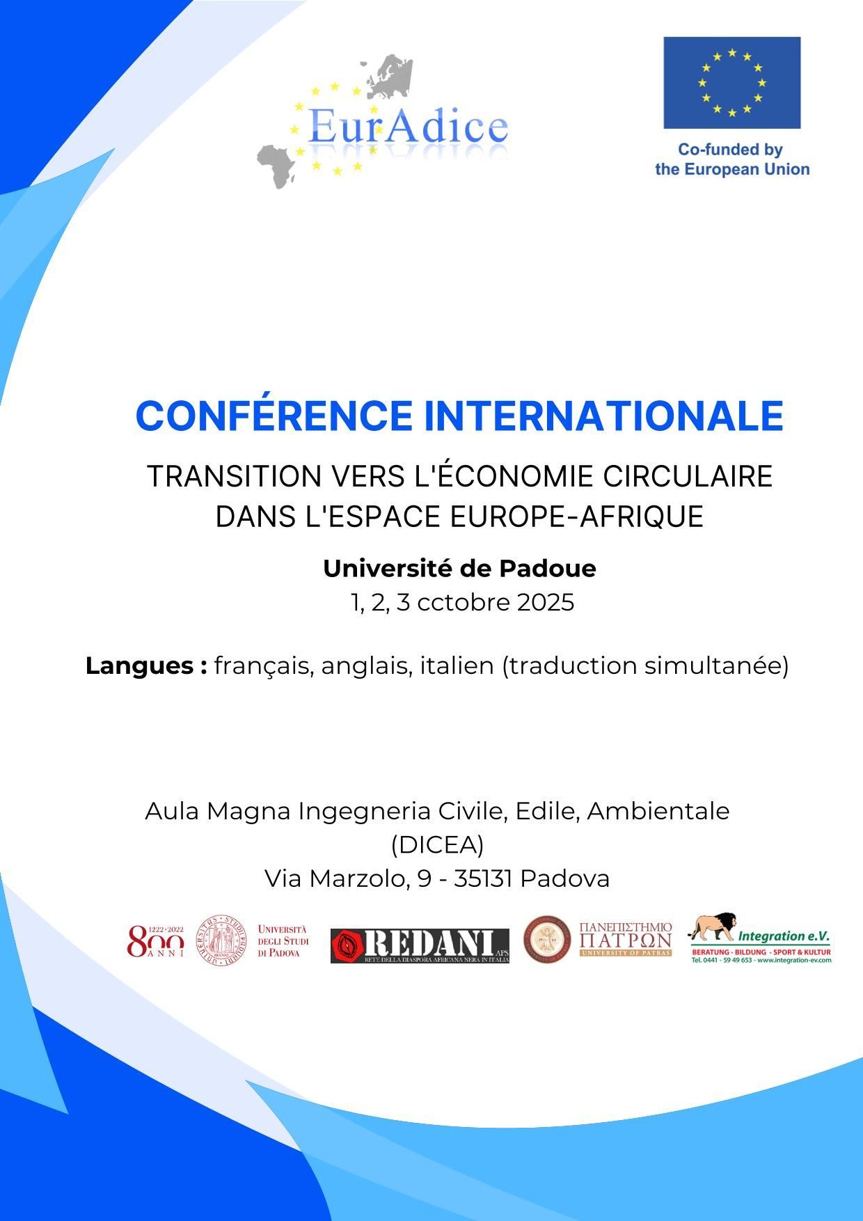 wir freuen uns Ihnen mitteilen zu können, dass das Projekt EurAdice ( Afrikanische Diaspora Europas für eine inklusive Kreislaufwirtschaft ) nun zum Abschluss kommt. Aus diesem Anlass wird es am 01. , 02., 03. und 4. Oktober 2025 in Padua / Italien eine große Abschlussveranstaltung mit Vorträgen und Gala geben.