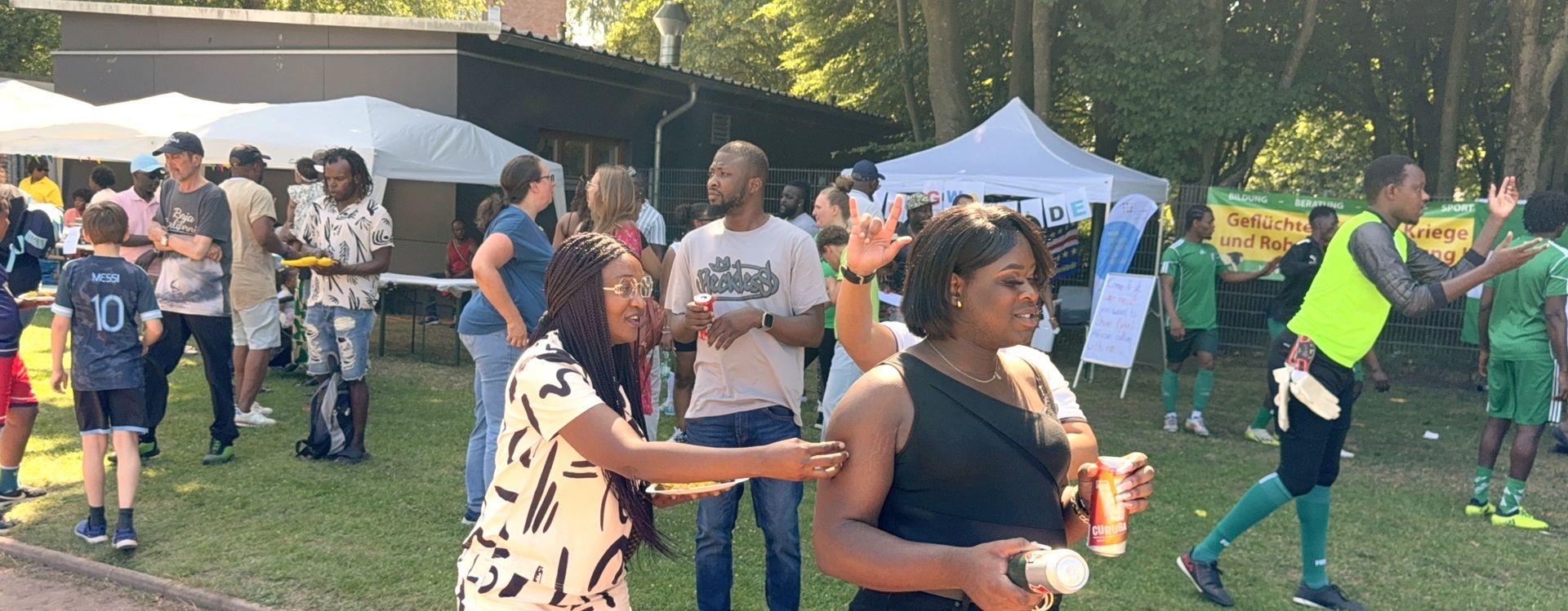 am Samstag, den 21. Juni ´25 hat auf den Sportplätzen an der Kennedystraße unser Fussballturnier gegen Rassismus, der 19. Afrika-Cup, stattgefunden. Bei strahlendem Sonnenschein und um die 30 Grad im Schatten trafen sich ab 12.00 Uhr verschieden Mannschaften aus afrikanischen Ländern. Dieses mal gab es eine Premiere. Zur Erinnerung an LORENZ hat ein Basketball-Turnier begonnen. Am ersten Tag in Form eines ungezwungenen Ballspielens ( Spiel-Show ), was am 28. Juni ´25 dann zu einem Wettkampf werden soll. Das Kulturbegleitende Programm entnehmt bitte unserem Info-Blatt.