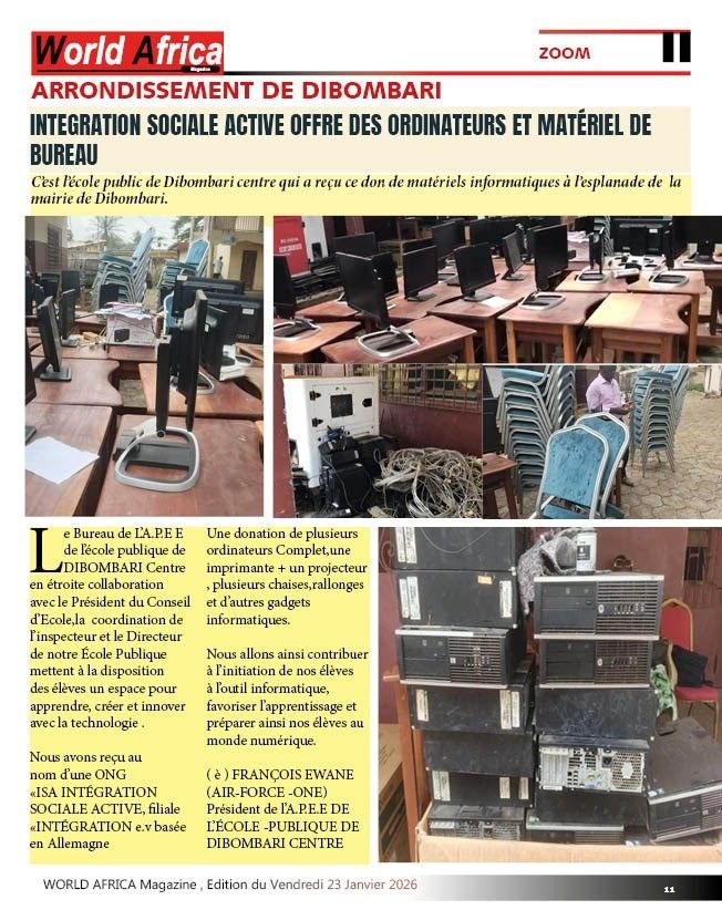 unser Verein Integration e. V. wird in diesem Jahr wieder zusammen mit unserem Partnerverein " Integration Sociale Active " in Kamerun ein Weihnachtsfest veranstalten. Es wird in dem in der Nähe von Duala liegenden Dorf Dibombari stattfinden. Dort betreuen wir die Kinder schon seit einigen Jahren mit unseren Projekten. Die meisten von ihnen sind mit ihren Eltern aus dem Bürgerkriegsgebiet im Westen des Landes geflüchtet. Zur Zeit sind es 323 Kinder.