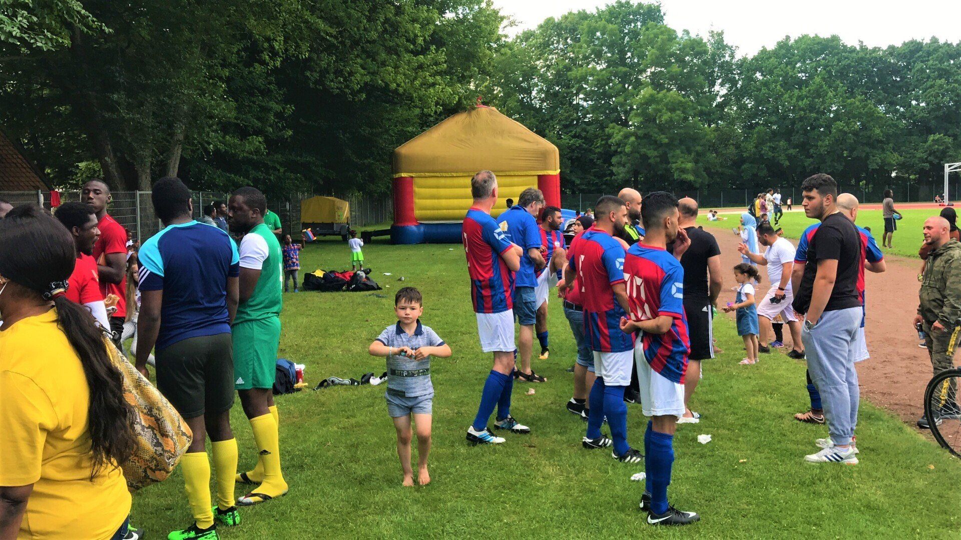 unser Fußball turnier gegen Rassismus, der 15. Afrika-Cup, hat Corona-bedingt am 03. Juli ´21 auf den Plätzen an der Kennedystraße in Eversten unter Auflagen begonnen. Die Veranstaltung ist gut besucht worden. Es sind einschließlich der Spieler gut 400 Personen gekommen. Unsere aufgebauten Informationsstände sind mit großem Interesse aufgesucht worden. Im kulturellen Begleitprogramm haben wir auf der Bühne mehrere Auftritte der Sambagruppe aus Eversten gehabt. Auch die Frauengruppe aus Ruanda und Burundi "Aranga k`iwacu " haben einen schönen und bunten Eindruck hinterlassen.
