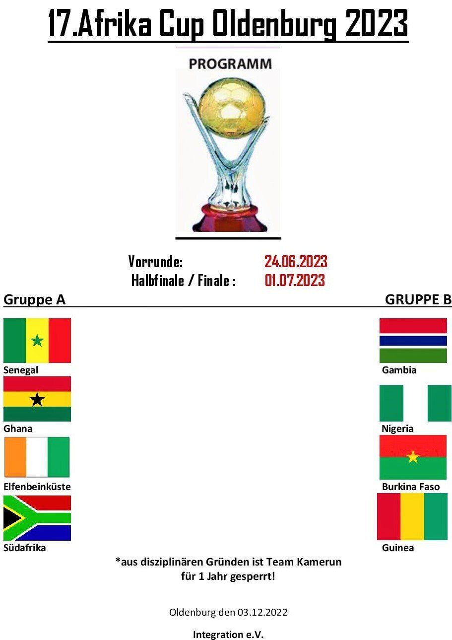 Am Samstag, den 01. Juli 2023, fand das Finale des 17ten. Afrika-Cup in Oldenburg statt. Das Turnier wurde mit dem Ziel organisiert, ein Zeichen gegen Rassismus zu setzen und gemeinsam für Vielfalt und Fairness einzustehen.